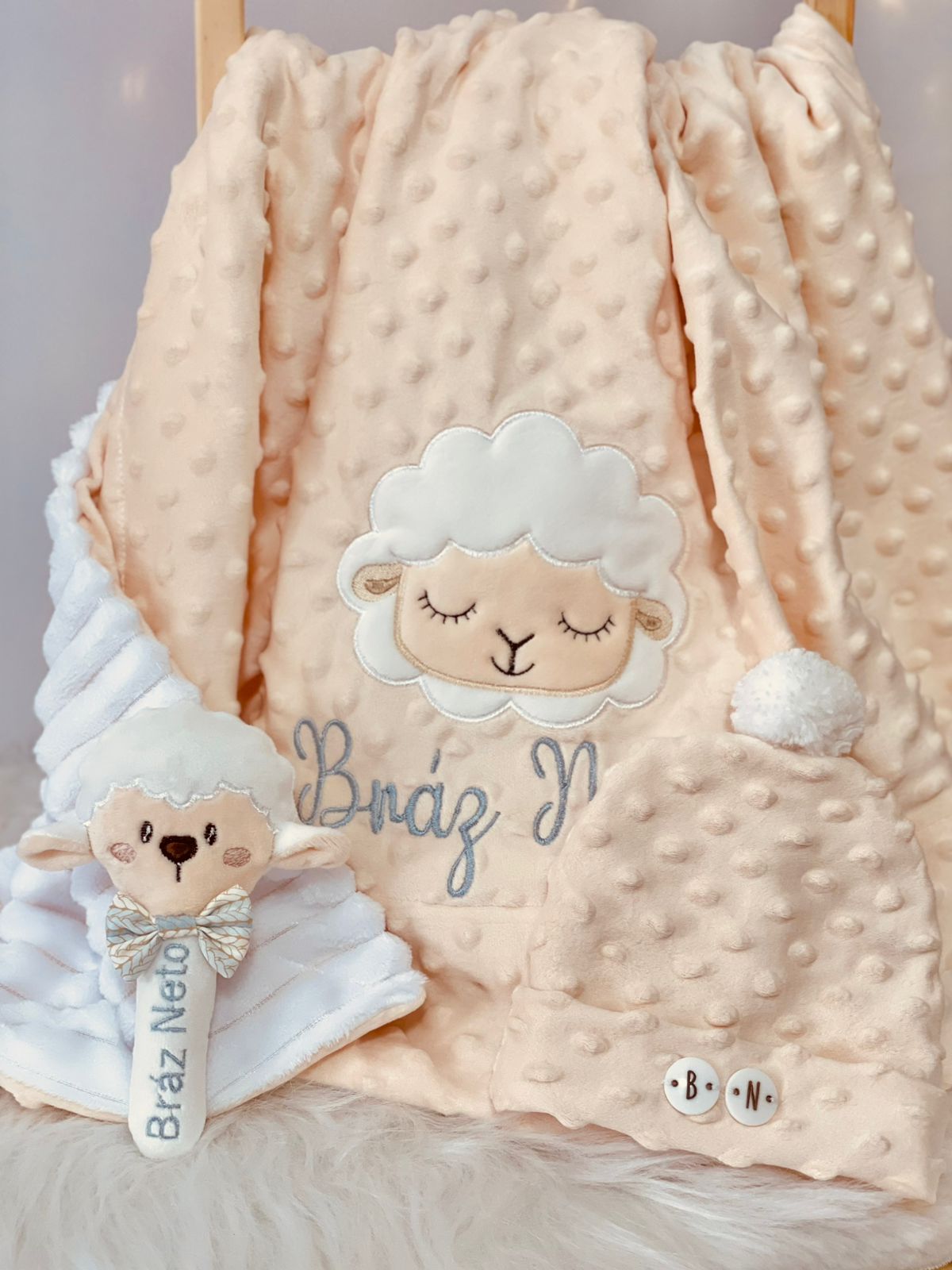 A manta pode ser personalizada, deixando seu enxoval ainda mais exclusivo.
