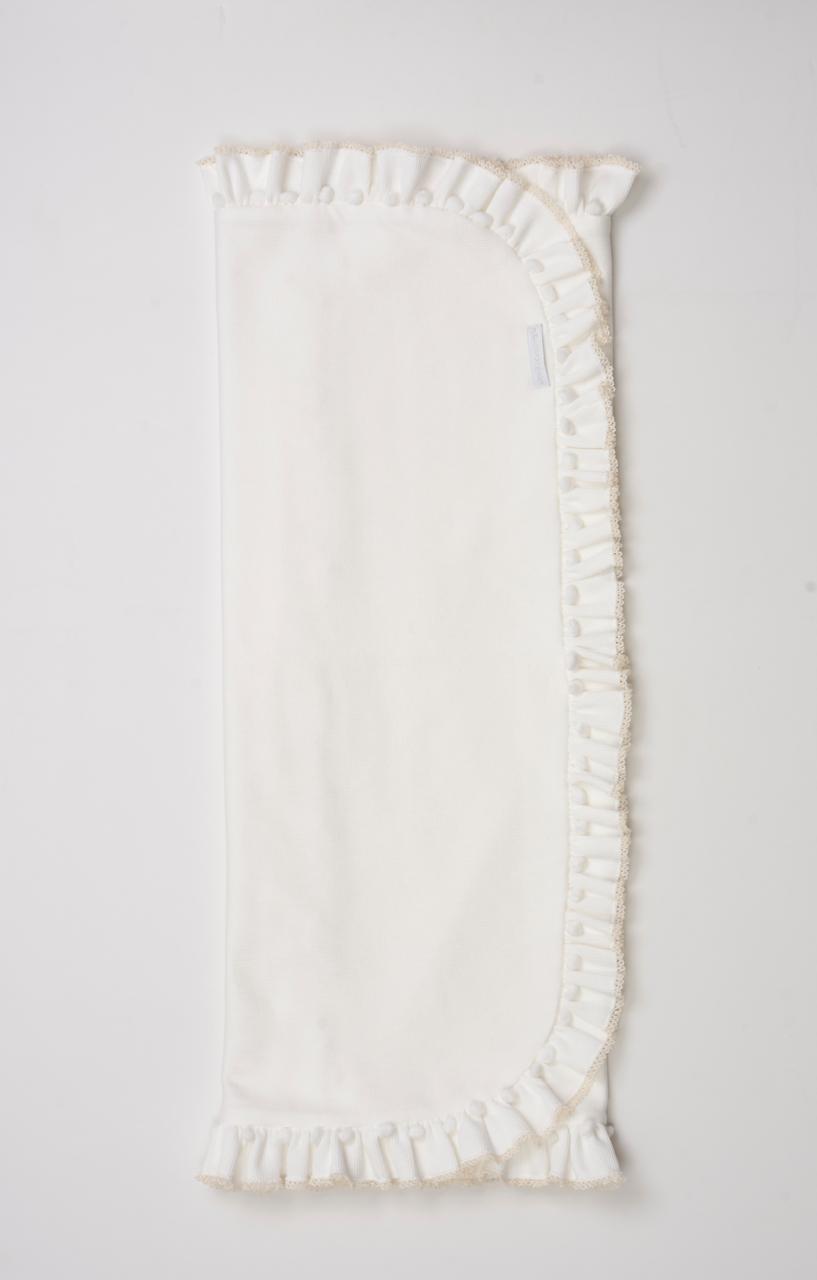 Manta Bege Coordenada: Manta de tamanho ideal (aproximadamente 80x80cm), na mesma malha tricotada e cor do macacão, perfeita para envolver e aquecer o bebê com suavidade.
